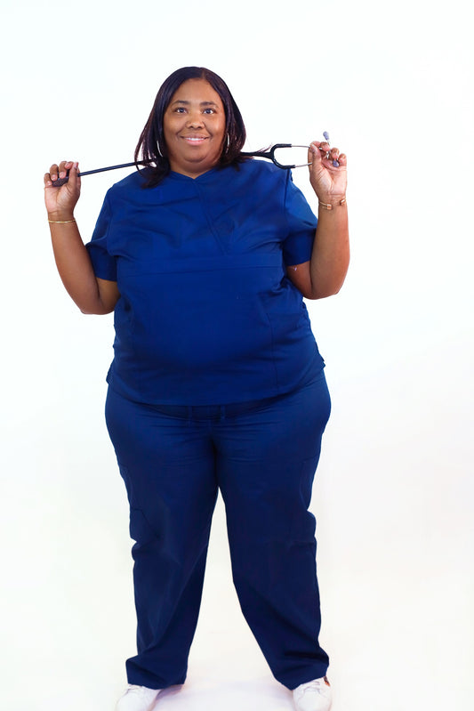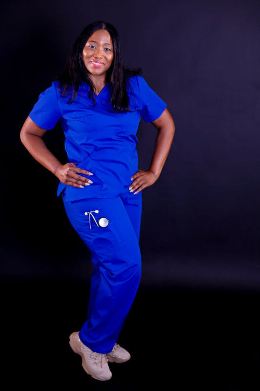 Scrub Set-Women's Mock Wrap Top/Cargo Pant Scrub Set by Sivvan-Caribbean Blue